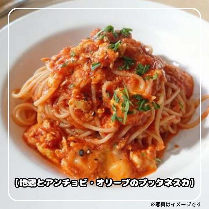 ・地鶏とアンチョビ・オリーブのプッタネスカ